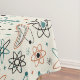 A funky atomic age mid century pattern tablecloth, featuring retro mcm space shapes in orange, teal blue, and black, on a light cream background, will give your dining room that spunk that it's needing. It's perfect for either retro or modernism home aesthetics.