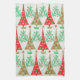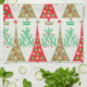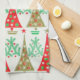 Jeepers! It's beginning to look a lot like a Mid Century Modern Christmas with this 1950s Cartoon Christmas Tree Kitchen Towel. The vintage design features a repeating image of red Christmas trees with green and white ornaments and green Christmas trees with red and white ornaments. Each tree has a star poised on top. Sprays of mint green foliage with red and green berries separate each tree. This retro design is the perfect way to begin decking your halls.