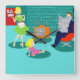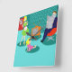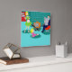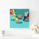 This 1950's Classic Television Wall Clock features a perfect 1950's family in its natural habitat. They are in their turquoise and teal living room. The father is lounging in his red egg chair, while reading the newspaper. The daughter is sprawled out on the floor in a lovely, pink frock. Her blonde hair is in a ponytail and she is kicked back watching a black and white television show on the bright orange, tube TV set. To the left, the mother is wafting into the room in a flouncy green dress and a white apron with red detailing. Not a hair on her blonde head is out of place. She is carrying a pink, three-layer cake with chocolate frosting. You won't believe the details in this design. The bright, red door in the distance, the retro artwork on the wall, the real newsprint on Dad's newspaper and the black and white housewife vacuuming her 1950's living room on the television set make this absolutely irresistible! Oh, my stars! They are a 1950's classic television family watching a 1950's classic television show. Is there no end to this brilliance?