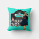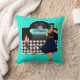 1950s Diner teal black & white chequered Cushion