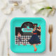 1950s Diner teal black & white chequered retro vintage paper plate. This 50s retro diner scene may inspire a feeling of nostalgia. If you’re a chequerboard pattern lover, then you are sure to fall for this chequered pink, black and grey collection. This chequered  pattern is definitely stylish, and the pink, grey and black colours go well together.