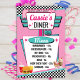 Celebrating your next special birthday or celebration in the timeless 1950's Diner theme. Go all out and create these cute customised diner poster menus! These feature teal, white, pink and black, with checked pattern and a 1950's Invite Central also has matching invitations and favour tags and other party printables in 4 colorways. Designed by www.invitecentral.com