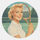 1950s Magazine Illustration Tennis Woman Classic Round Sticker