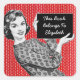 Book plate stickers featuring a vintage 1950s illustration of a woman holding a sign with a background of red and white polka dots. Customise them with your own text. Retro cool!