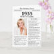 Say happy birthday to someone born in 1955 with this unique Newspaper style birthday card, including a photo of the recipient and a collection of fun facts and world news from the year of their birth. Designed to resemble a vintage newspaper in classic black and white style. A cute and fun way to celebrate the 1950s!