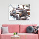 Very impressive product! The canvas is sturdily made. It features a saw tooth hanger on the back, making it easy to "try out" the canvas in several rooms until I found the best location. It attracts good comments from my friends. I love it! The printing is wonderful! Colors are as bright and crisp as they appeared on the website.