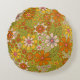 1960s, 1970s Green & Orange Retro Floral Round Cushion