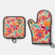 1960s 1970s Groovy Colourful Flower Power Oven Mitt & Pot Holder Set
