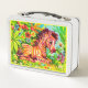 This is a standard metal lunchbox that appears to work just fine. We designed this box ourselves with an uploaded photo and custom text on the front and back. It looks absolutely beautiful except the front of the lunchbox is not centered like it shows in the photo. The print borders don't align with the inset flat part of the box where the preview photo online showed it perfectly centered in there. The back looks nice and centered though.