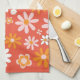 1960s Retro Orange Flower Power Kitchen Tea Towel