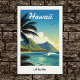 • This vintage travel poster captures the idyllic beauty of the Hawaiian Islands. The classic design is a simulated painting on a canvas, perfect for adding a touch of serene island charm to any room.