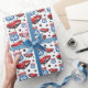 1961 C1 Red Classic Sports Car Retro Route 66 Sign Wrapping Paper