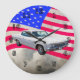 Classic white 1966 Chevrolet Caprice 427 muscle car photograph and American Flag background.