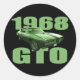 1968 Pontiac GTO Muscle Car Green Classic Round Sticker
