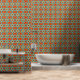 1970s Flower Tile Motif: Enamel Look Floral Tiling Wallpaper