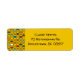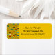 These return address labels have a 1970s design of ovals in red, orange, brown, white, and blue on a field of gold.
