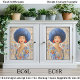 This striking portrait blends the glamour of 1970s style with modern artistic flair. A confident woman with a voluminous blue afro and bold makeup gazes directly at the viewer, wearing large round statement earrings. Her dress features a patchwork of colourful geometric and floral motifs reminiscent of Gustav Klimt’s decorative patterns with a retro twist. The background continues the mosaic theme in a softer palette, adding depth without distracting from the central figure. Artwork similar to a stylised oil painting infused with mosaic and mid-century influences……COLOR COMBINATIONS: Cobalt blue, crimson red, gold, cream, sky blue, beige……PERFECT FOR: Decoupage with a retro or bohemian theme, mixed media portrait art, furniture upcycling with a vibrant 60s–70s influence, craft projects such as altered books and journals, and statement gift wrap...…... 🖤 NOTE 1. This design is available in two options: Left and Right. You can find them in the Collection shown below. If they don’t appear there, try searching for their unique identifiers: EC6L for the Left design and EC6R for the Right version….🖤 NOTE 2. The 18 lb tissue is a great choice if you like a little extra strength—it's easier to handle, resists tearing and allows for gentle repositioning. It’s also more opaque, making it perfect for darker surfaces. The 10 lb tissue is wonderfully lightweight and flexible giving you that smooth, blended finish. It’s ideal for layering on furniture or smaller projects so treat it gently and it will reward you with stunning results!.….🖤 NOTE 3. All items with this particular design share my unique identifying “Letter/s Number/s” label in the title for easy searching. …..🖤