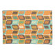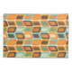 This pillowcase has a mid-century modern design of rounded rectangles leaning to the side with leaning rectangles inside made from lines all in 1970s colours.