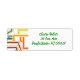 These return address labels have an art deco design of lines in green, yellow, brown, orange, and blue.