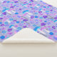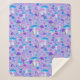 This sherpa blanket is decorated with cute illustrated mushrooms and flowers in a dreamy purple and turquoise blue colour palette.