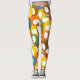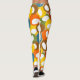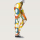 These leggings have mid-century modern design of circles in blue, green, brown, sienna, yellow, and orange with white ovals inside.