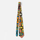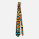 This tie has a design of ovals that form flowers in 70s retro colours.