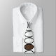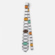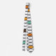 This tie has a 1970s retro design of ovals in white, brown, blue, and two shades of orange.