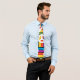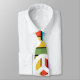 This tie has a design of squares made of rectangles in bright 1970s colours with peace signs scatter around it.