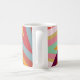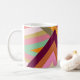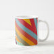 This mug has a 1970s retro design is made from layered upside-down Vs layered in three places all in retro colours.