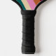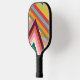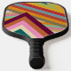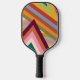 This pickleball paddle has a 1970s retro design is made from layered upside-down Vs layered in three places all in retro colours.