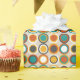 This funky 1970s retro style patterned wrapping paper features circles of brown, turquoise blue, white, and two shades of orange. This is sure to be an eye catcher when you give someone your gift!