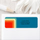 These return address labels have a 1970s design of concentric squares in retro shades of blue, white, and orange.
