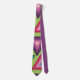 This necktie has a 1970s design on concentric triangles in shades of teal, orange, yellow, purple, and pink on a field of green.