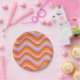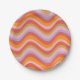 1970s Wavy Stripes, Orange Pink Red Purple Green Paper Plate
