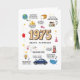 Celebrate a milestone in style with this unique birthday card that takes a nostalgic trip back to 1975! At the heart of the design, bold and proud, is the year "1975," surrounded by fascinating fun facts that bring the past to life—like the world and U.S. population at the time, average prices for gas, a loaf of bread, a new house, and even the most popular baby names. It's more than just a birthday card, it's a delightful time capsule that sparks memories, conversations, and smiles. It's a perfect thoughtful and fun way to honour their journey and celebrate the world they were born into.