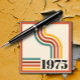 .: Retro Styling with rainbow of retro stripes and vintage style text