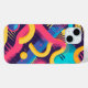 Vivid, wavy lines and geometric shapes intertwine in a dynamic composition of pink, yellow, and blue. A harmonious blend of colors and patterns gives the artwork an energetic, abstract feel.