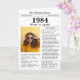 Say happy birthday with this unique Newspaper style birthday card, including a photo of the recipient and a collection of fun facts and world news from 1984. Get creative and create a personalised keepsake. Designed to resemble a vintage newspaper in classic black and white style. A cute and fun way to celebrate the 1980s!