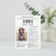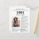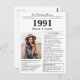 Say happy birthday with this Newspaper style Postcard, including a collection of fun facts and world news highlights from 1991. Get creative and create a personalised and unique keepsake! Designed to resemble a vintage newspaper, it features personalised headlines, text and the photo of your choice.