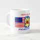 199TH LIGHT INFANTRY BRIGADE VIETNAM JUMBO MUG WITH 199TH LIGHT INFANTRY BRIGADE SSI, U.S. AND NORTH VIETNAM FLAGS DESIGN.