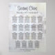 Make your wedding reception beautiful with this seating chart. Designed as a part of our White Reflections Wedding Suite, it features black text over a background of reflecting white flowers and hearts. This chart shows table assignments so your guests will have an easy time finding the right table.