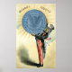 19th century American print depicting Uncle Sam's enthusiasm for the Silver Standard. Sam seen holding a Morgan Silver Dollar, above the dollar the words ' Security, Equity '.