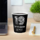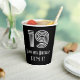 This vintage look and Roaring Twenties inspired birthday themed paper cup design features a large art deco inspired style number “19”, in addition to the birthday greeting message “Happy 19th Birthday,” and a custom name. It also has a black-coloured background. Vintage look birthday themed paper cups like this might be used at a birthday party in celebration of somebody’s nineteenth birthday. [~Z0000542]