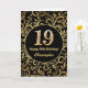 19th Birthday Black and Gold Floral Pattern Birthday Card. For further customisation, please click the "Customise it" button and use our design tool to modify this template.