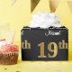 This sophisticated, elegant, and luxurious birthday-themed wrapping paper design features a large ordinal number “19th” having a faux/imitation gold-inspired gradient pattern, plus the birthday greeting message “Happy 19th Birthday,” and a custom recipient name in a script-style font. The background is coloured black. Birthday themed wrapping paper like this might be a fun way to wrap a gift or present being given to somebody who is celebrating their nineteenth birthday. [~Z0000515]