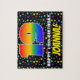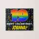 This colourful and joyful birthday jigsaw puzzle design features a large number “19” having a multicolored rainbow spectrum inspired gradient pattern. It also features the message “HAPPY 19th BIRTHDAY,”, and a personalised recipient name. The background features a vibrant, multicolored stars pattern. An eye-catching, personalised birthday puzzle like this might be a fun way to send birthday wishes to somebody who is celebrating their nineteenth birthday. [~Z0000607]