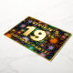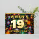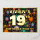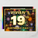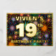 The front of this eye-catching nineteenth birthday party foil invitation card design features a personalised name, a large number “19th”, the message “BIRTHDAY PARTY!”, and a border. The background of the front has an exciting, multicolored pattern that resembles bursting celebratory fireworks. The back features personalised details about the event, such as the date, time, location, and any other relevant information. Personalised invitations like these might be a fun way to invite guests/attendees to a birthday party/gathering being held to honour somebody’s 19th birthday. [~Z0000602]