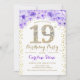 19th Birthday Party - White Gold Purple Invitation