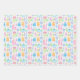 nineteenth birthday bright pastel pink, blue, green, purple and orange party cake, presents and balloons. Each present has the number 19 on it to make the birthday girl feel special. Butterflies, flowers, xo's, and hearts are added throughout the pattern. Pretty party wrapping paper for a 19th birthday celebration.