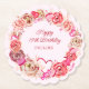 19th Birthday Pink Roses Swirly Heart Paper Coaster